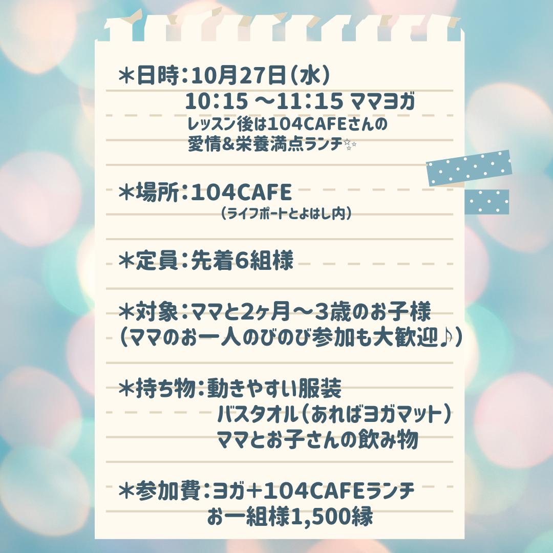 10月27日(水)10:15~(ヨガレッスンは約一時間)