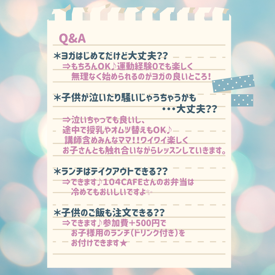 ※講師も2児のママです。子どもの体調管理には努めますが、発熱などの場合開催を延期させていただく場合がございます。